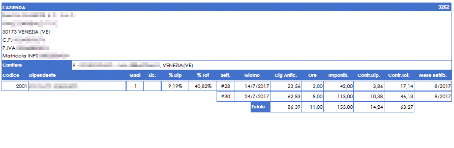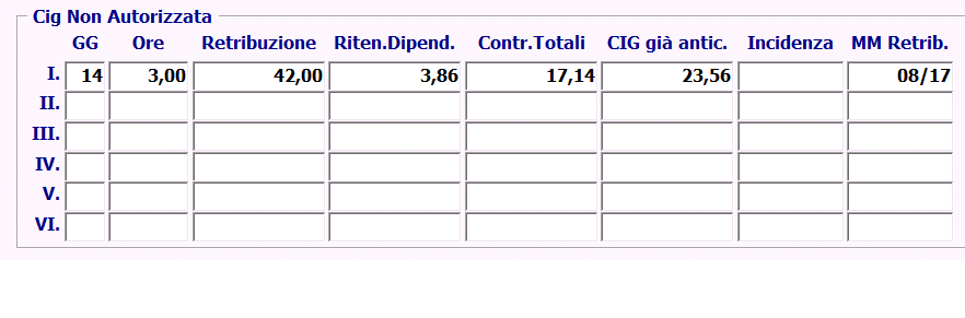 Qualora la Cig non fosse stata anticipata dalla ditta, la voce 1.5617 non sarà presente.