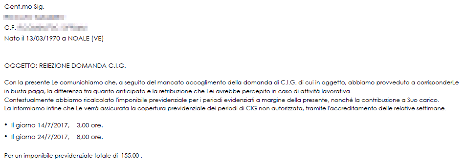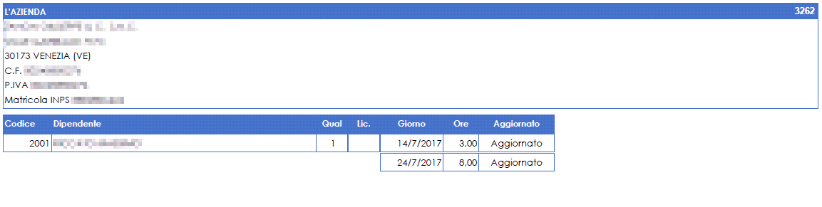 La “Stampa riepilogo aggiornamento”, permette di avere la lista di dipendenti e giorni di Cig Non Autorizzata che sono stati aggiornati in P.1.L.: